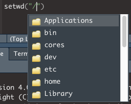 - Bottom left = console. When commands are sent to R, the console will show the progress/output/result. Code can also be entered and run directly in the console.