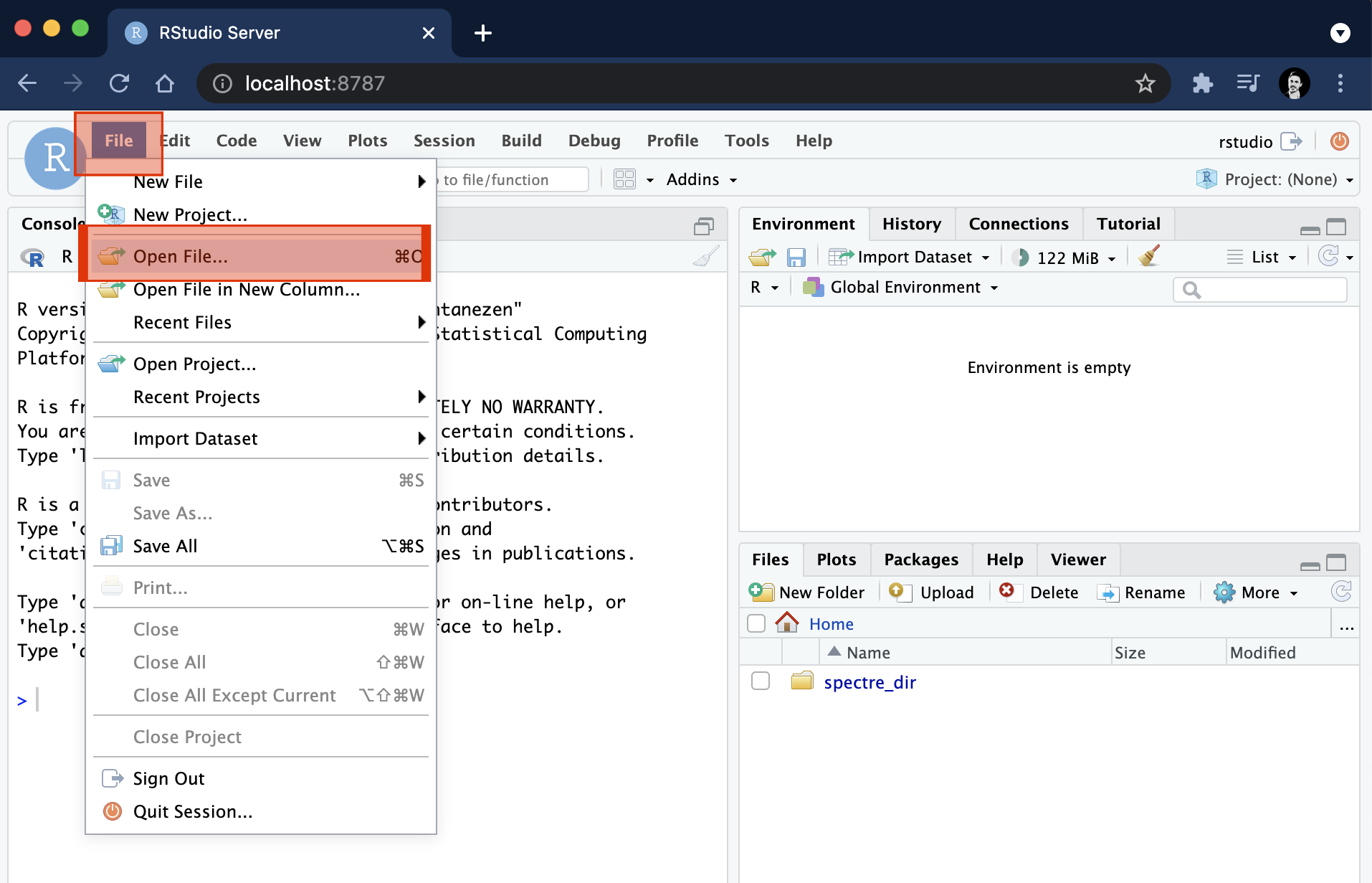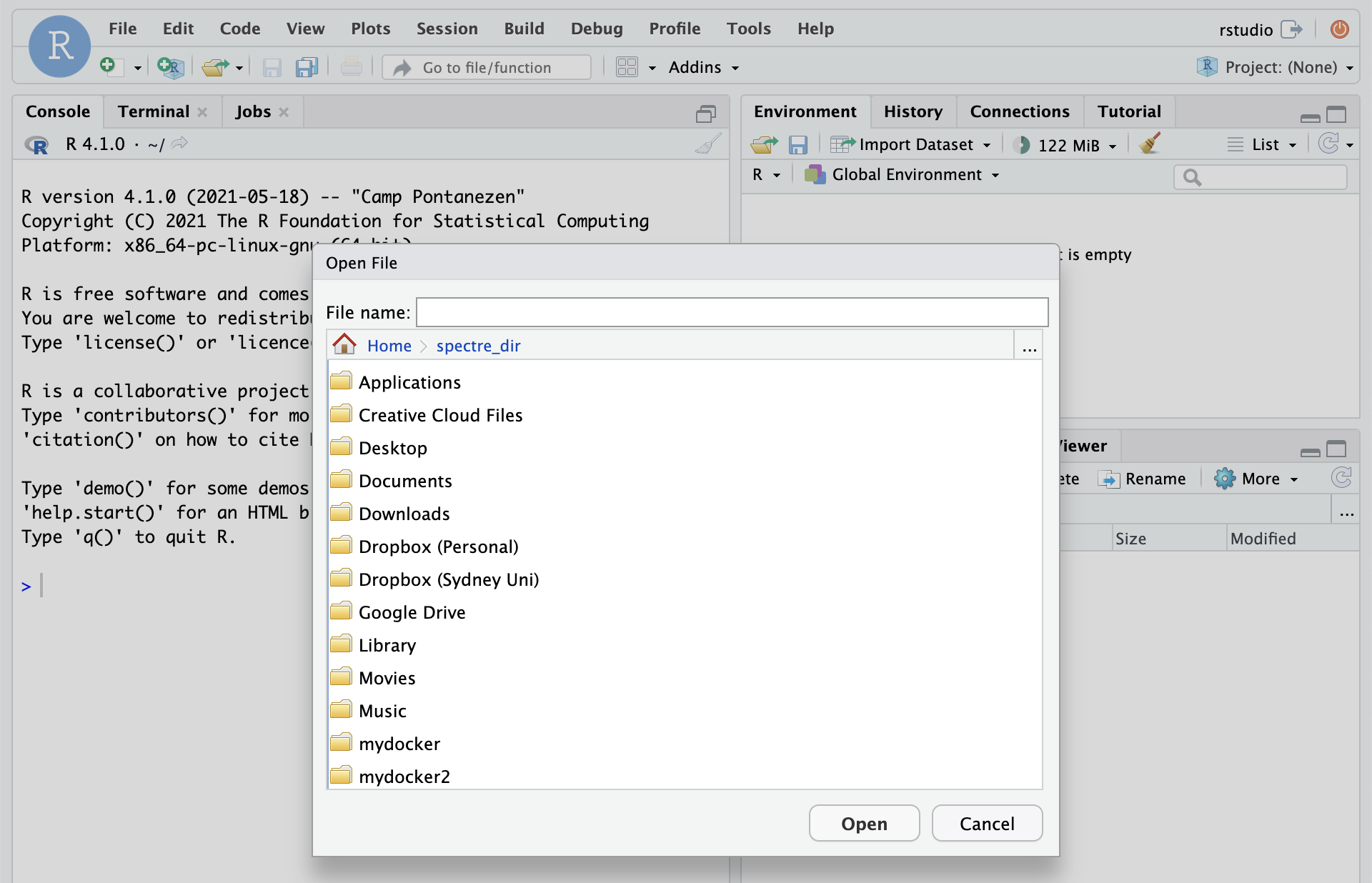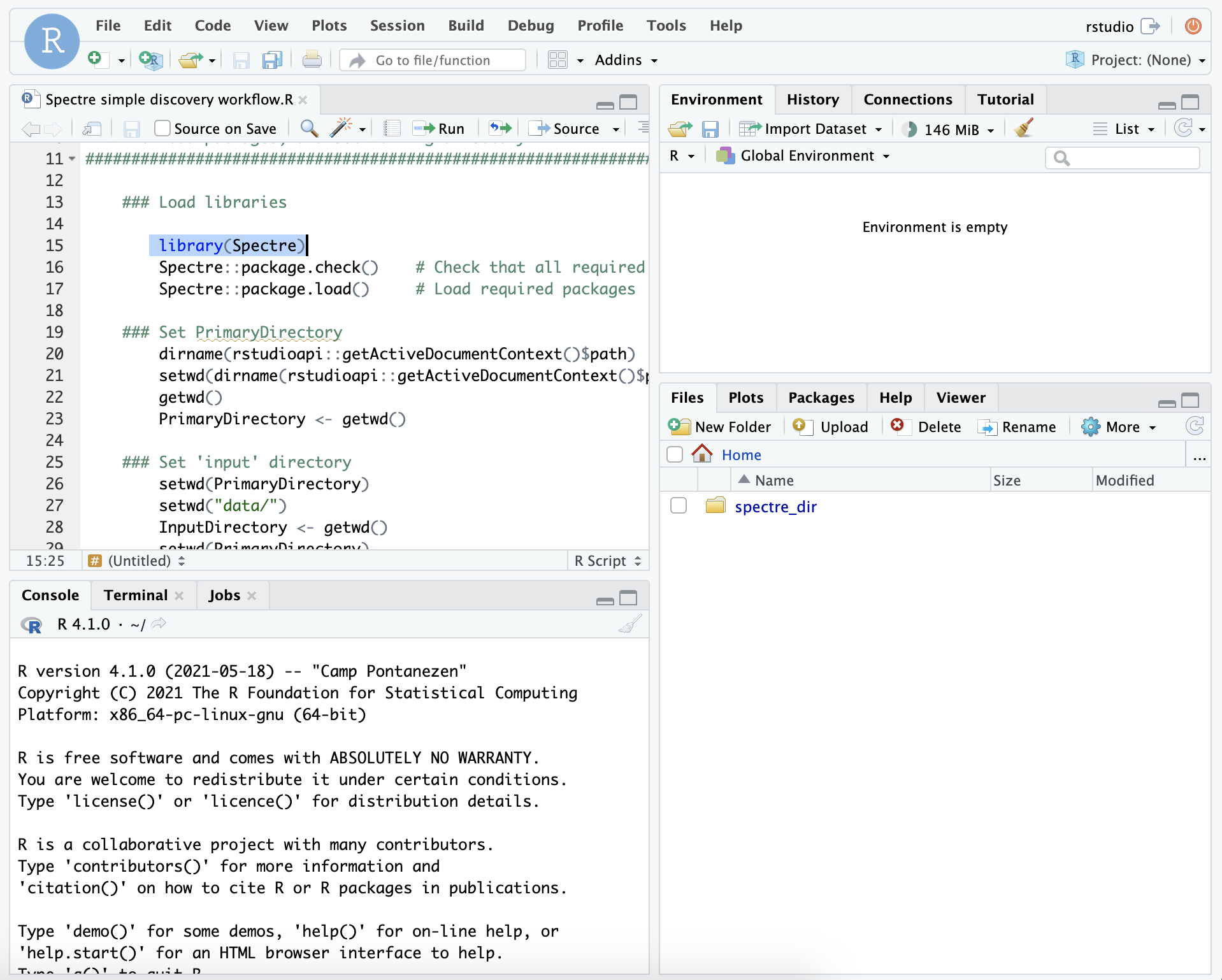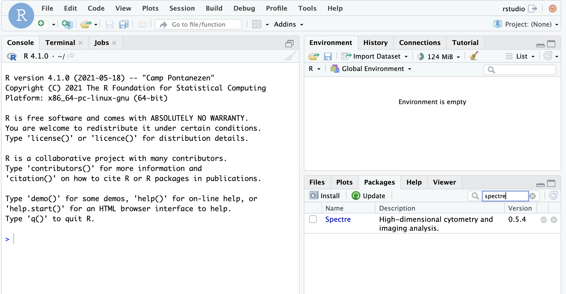 - Install via Docker. Here you can download a Docker image that contains a pre-compiled installation of R, RStudio, the Spectre package, and other associated packages. This is a useful option for reproducible analysis.