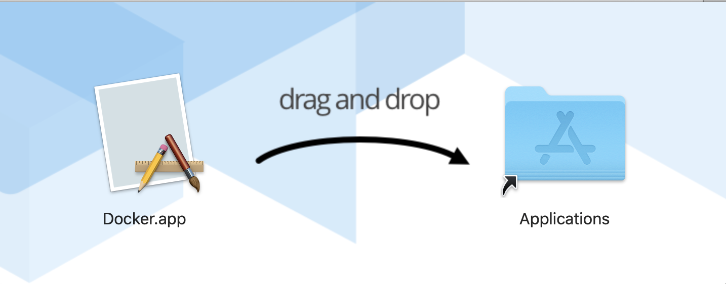 When the following window opens, drag and drop the ‘Docker.app’ icon into the ‘Applications’ shortcut.