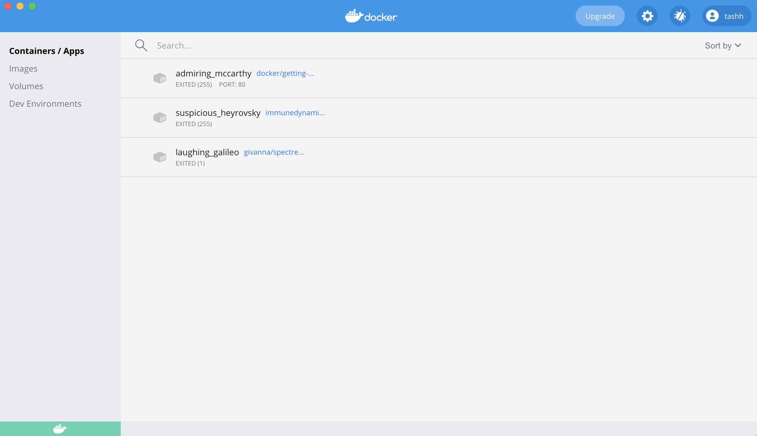 Open Docker app from the applications folder or bar at the bottom of the screen.