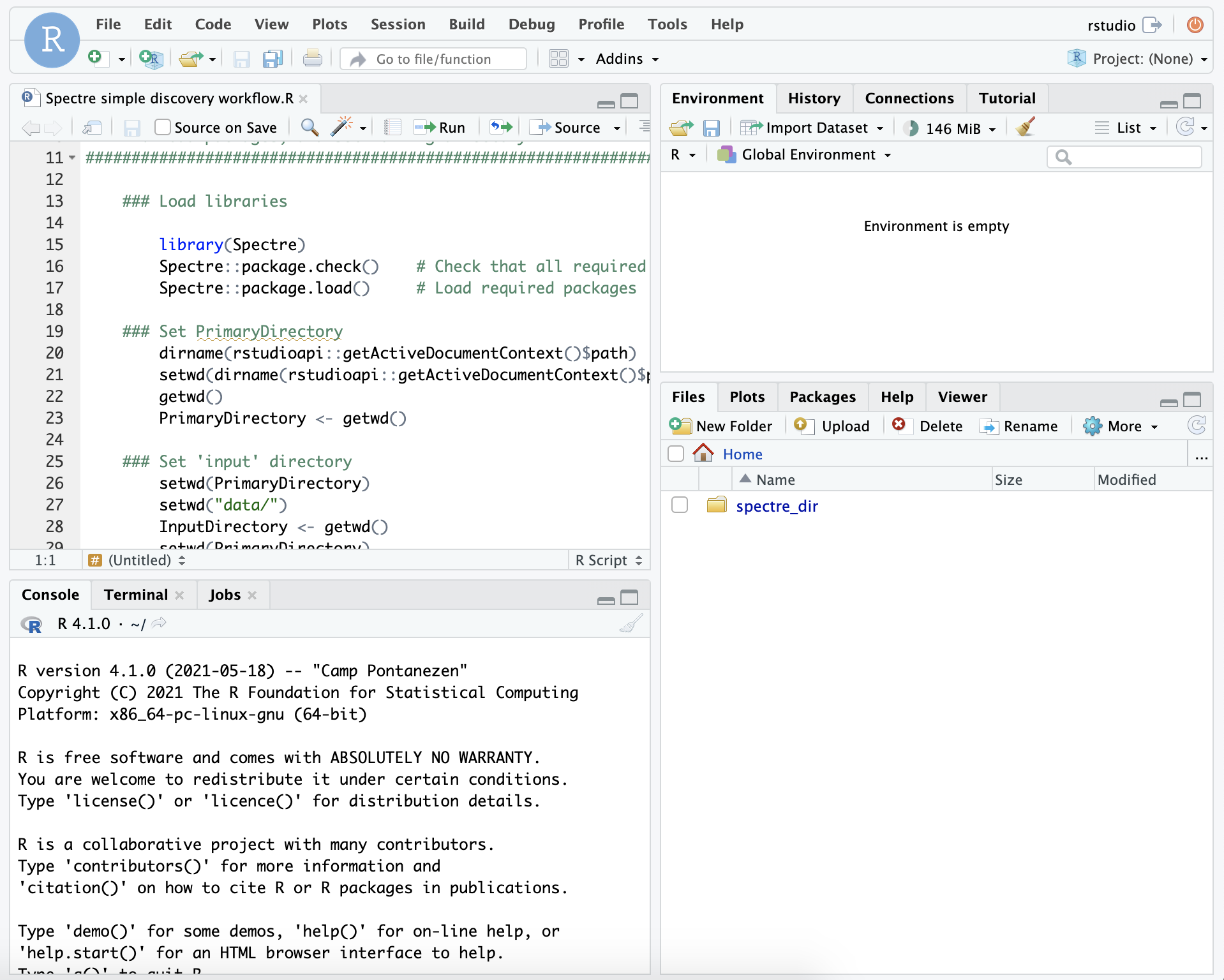 - Install via RStudio. Here you can download R and RStudio, and then install the Spectre package within this framework.