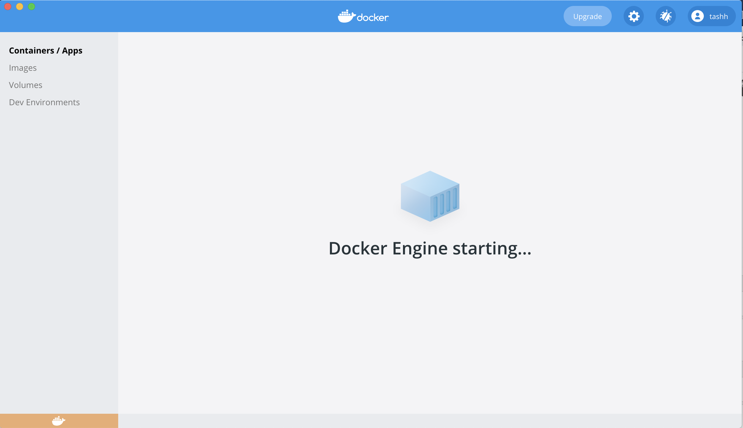 Additionally the program itself should open. Wait a few moments while the ‘Docker Engine’ starts.
